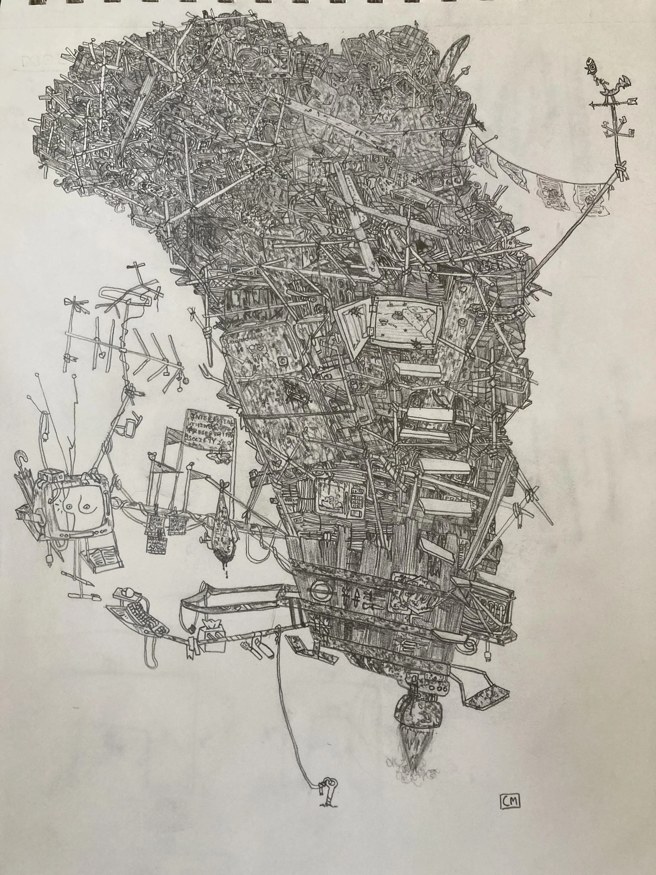 Pencil Sketches The cart of a hoarder in the distant future. I drew this when thinking of ideas for my Dirk projects. A deer Slide 1 Slide 1 (current slide) Slide 2 Slide 2 (current slide)
